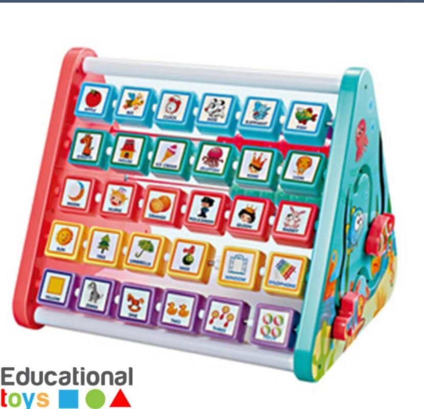 activity triangle centre cube , 5 in 1 abacus smiley clock drawing board