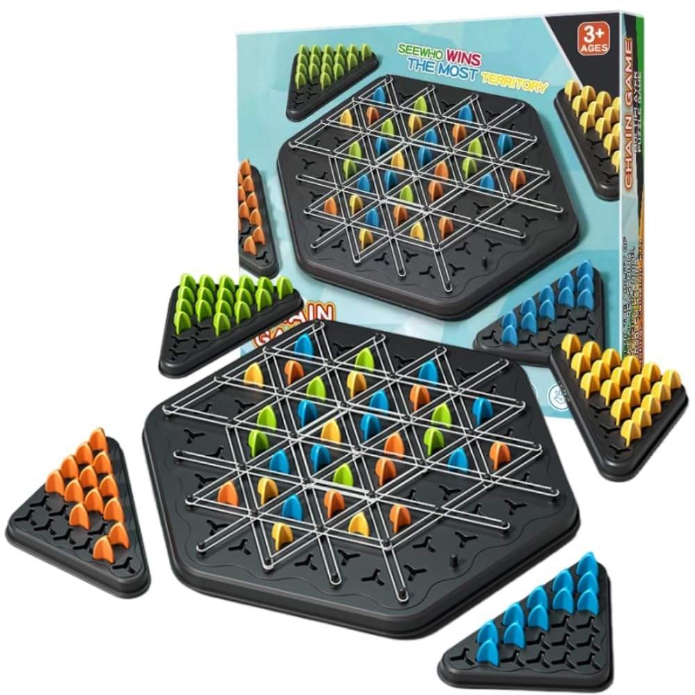 Chain Triangle Chess Game, Triggle Rubber Band Game, 2 to 4 Players for Family